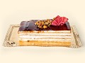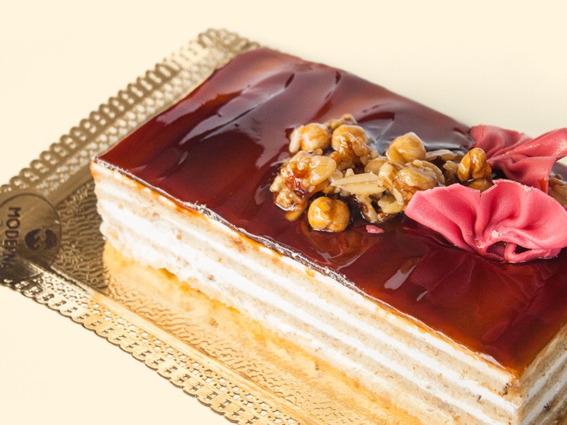 Massa de noz, musse de caramelo, decoração geleia de caramelo com nozes e avelâs.